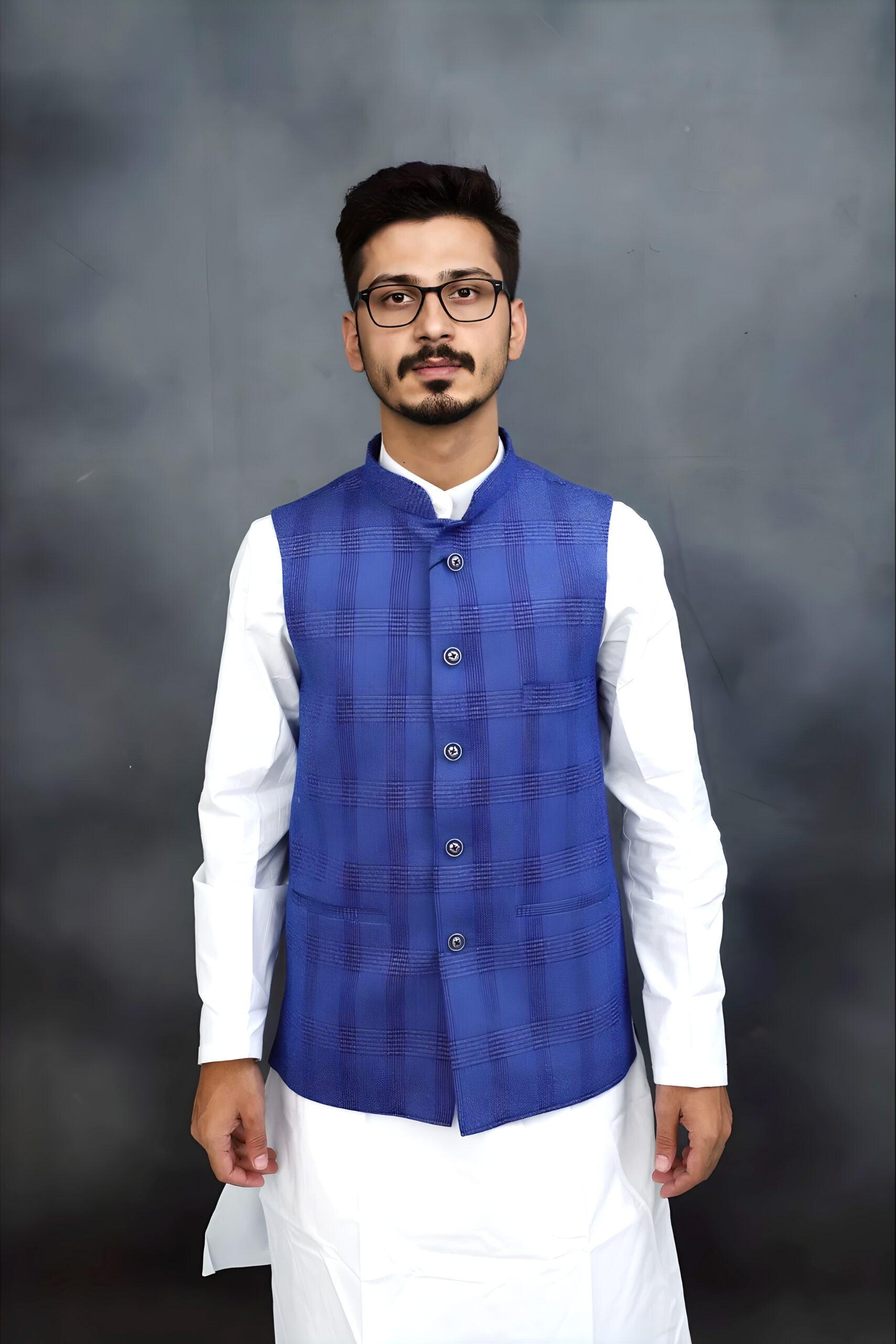 - Fit: It seems to be a regular or tailored fit, designed to be worn over a kurta or shirt.