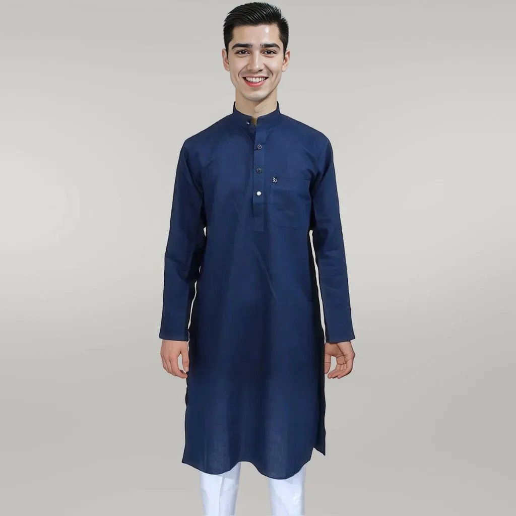 Step out in timeless style and comfort with our Men’s Classic Navy Blue Kurta paired perfectly with crisp White Pyjama. This elegant ensemble is a versatile addition to any wardrobe, ideal for various occasions, from festive celebrations and casual gatherings to everyday wear.